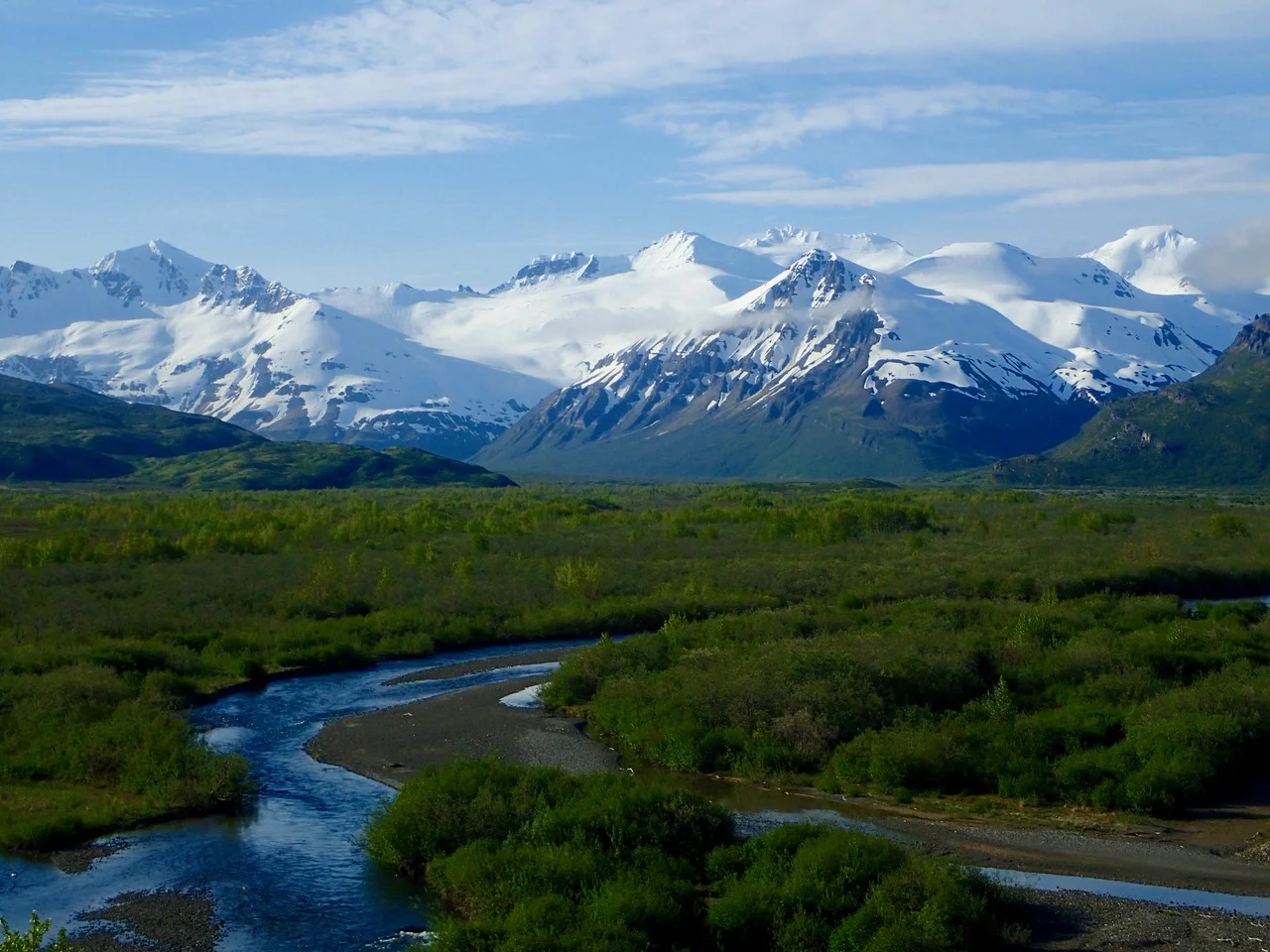 The beautiful Dog Salmon River valley on the Alaska Peninsula. Photo was taken from the knoll behind the Dog Salmon River base camp by Jerry Starkey one of AAA’s guides.