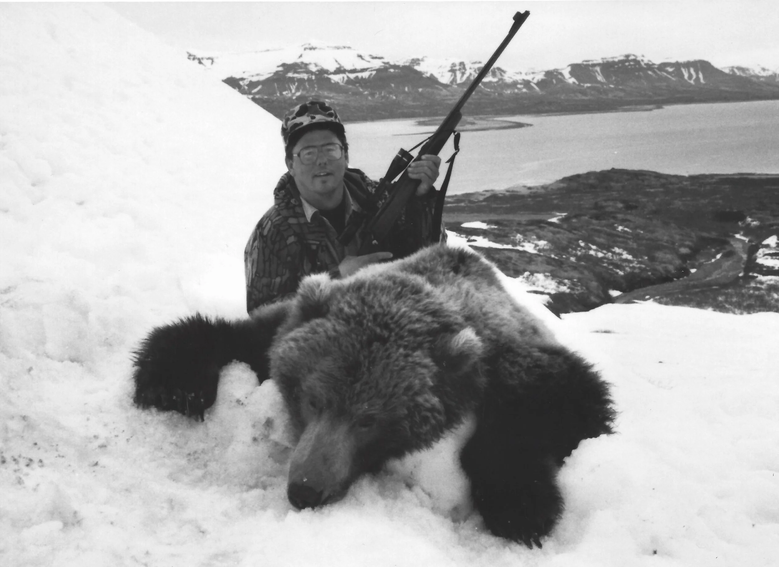 The spring of ’92 was a record-breaking warm season with no rain which is unheard of in the Cold Bay area. Matt arrived in Cold Bay on May 7th for his hunt that started on opening day, May 10th. Dan and I decided to hunt his client Randy Cain of PA and Matt out of the same camp, Barney Creek. We would hunt the main Barney Creek valley and rotate them using the Zodiac to hunt the shoreline. Both areas were super for harvesting big bears.