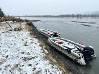 The last couple days were snow weather days. Not much hunting going on so when we caught a break in the weather on the last hunting day, we decided it would save us time if we took two boat loads out that evening. They ended up taking Nate, me and the moose out. That way they would only have four loads going out the next day after they broke down camp. The water level was good going out but it rained really hard all that night and the water came up another four inches which made it even better. So much for all of my worrying.